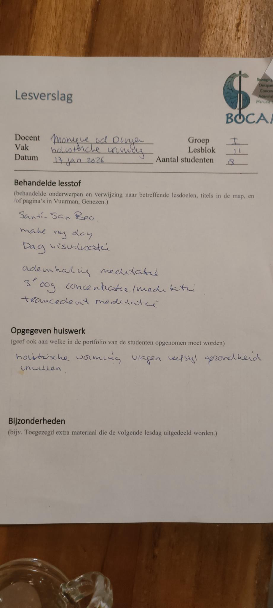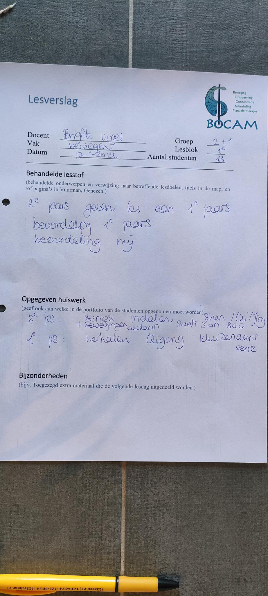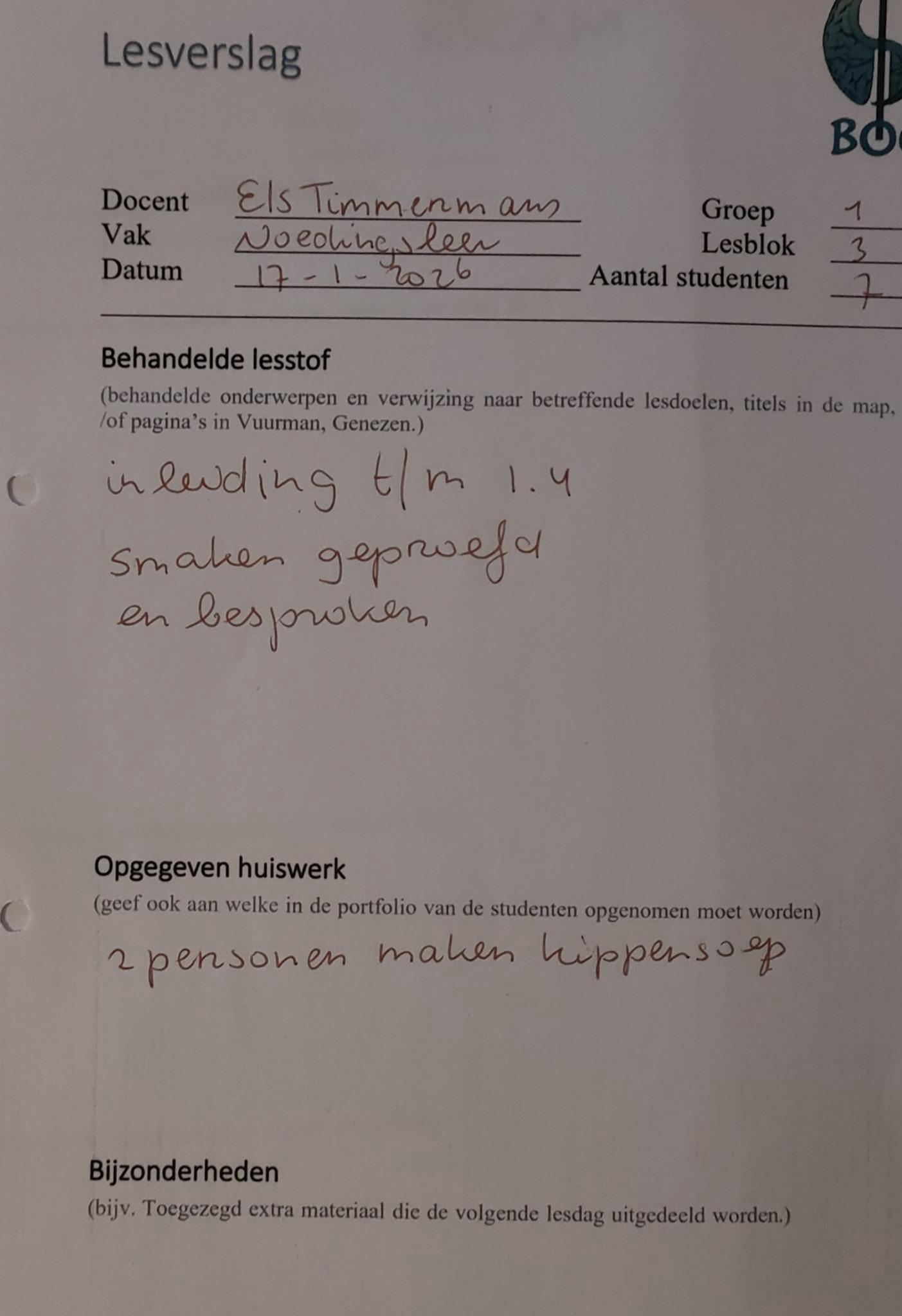 Bijgaand de lesverslagen