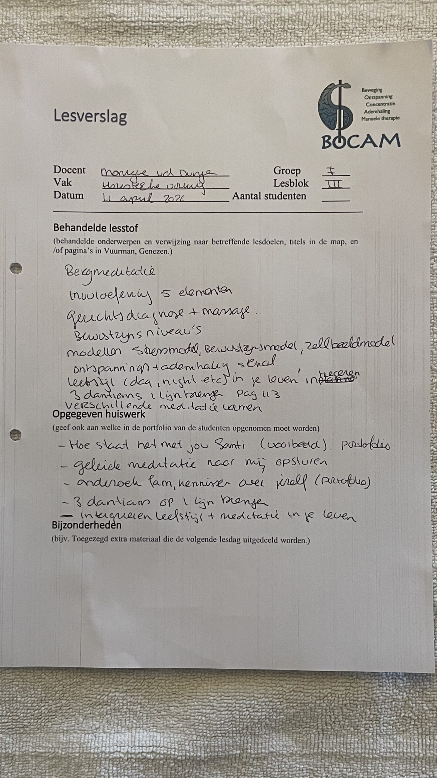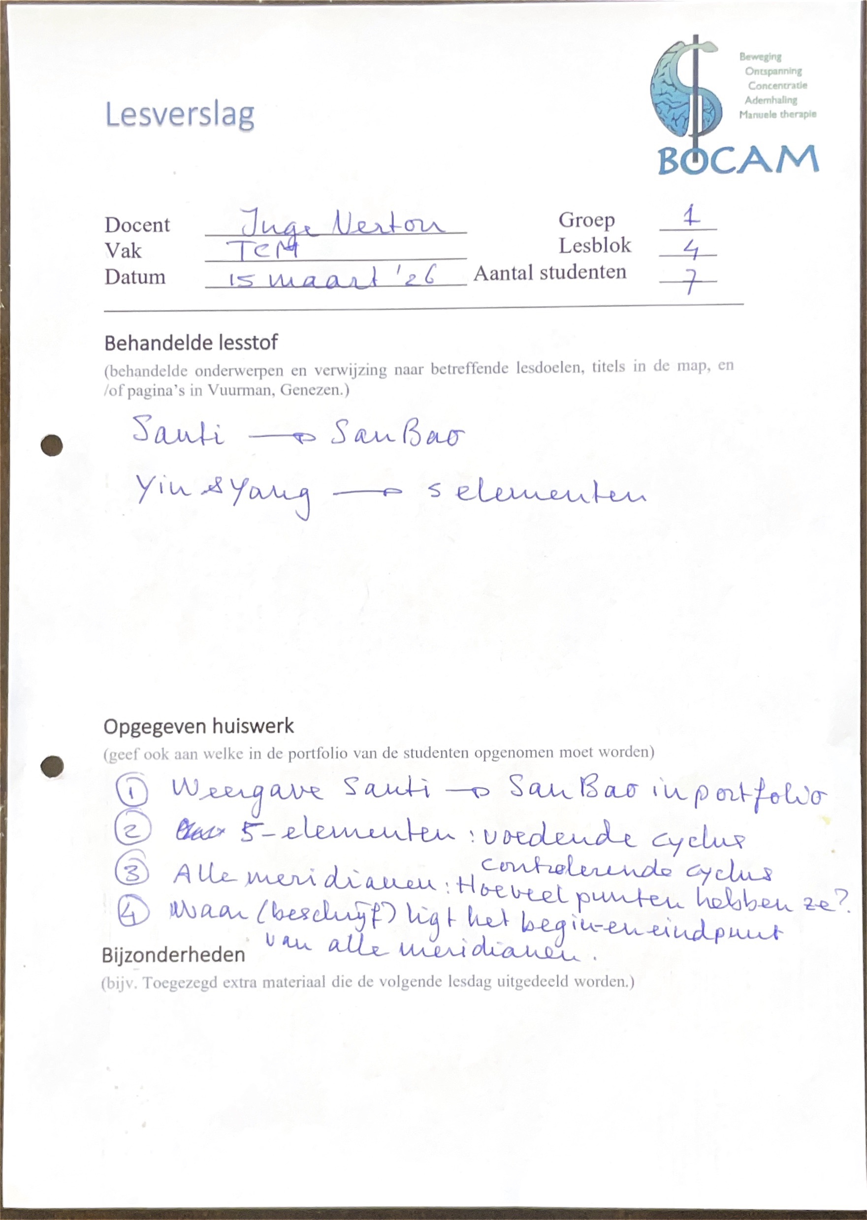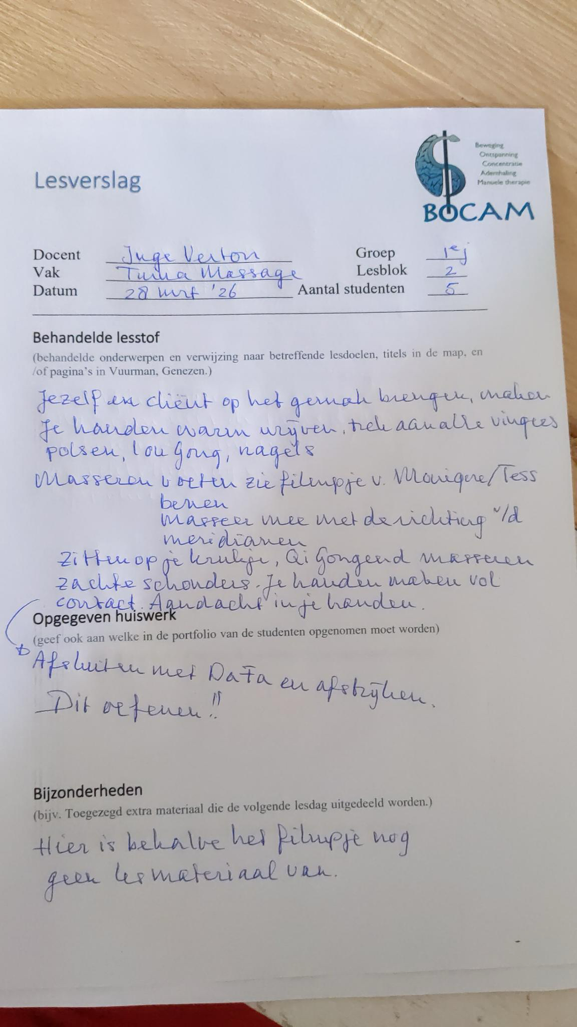 Lesverslagen BOCAM 1e jaarsdoor prod_bocamin Lesverslagen BOCAM 1e Jaar 2025-2026on Geplaatst op 1 december 202512 april 2026 Bijgaand de lesverslagen November LV: Introductie Bocam 1e jaars 29 November 2025Downloaden LV Bewegen Qigong 1e jaars 29-november 2025Downloaden LV: Filosofie 1e jaars 29 November 2025Downloaden LV: Massage Tuina 1e jaars 30 November 2025Downloaden LV: Bewegen 1e jaars 30 November 2025Downloaden LV Holistische vorming 1e jaars – 30 november 2025Downloaden December LV Bewegen : 1e jaars 6 December 2025Downloaden LV TCM: 1e Jaars 6 December 2026Downloaden LV Holistische Vorming : 1e Jaars 6 december 2025Downloaden LV Bewegen : 1e jaars 20 December 2025Downloaden LV Massage : 1e jaars 20 December 2025Downloaden LV TCM : 1e jaars 20 December 2025Downloaden Januari LV Bewegen : 1e en 2e jaars 17 Januari 2026Downloaden LV Holistische vorming : 1e jaars 17 Januari 2026Downloaden LV Voeding : 1e jaars 17 Januari 2026Downloaden LV Bewegen : 1e jaars 31 Januari 2026Downloaden LV Mentorles : 1e jaars 31 Januari 2026Downloaden LV Filosofie : 1e jaars 31 Januari 2026Downloaden Februari LV Bewegen : 1e jaars 14 februari 2026Downloaden LV Massage: 1e jaars 14 februari 2026Downloaden LV Voeding : 1e jaars 14 februari 2026Downloaden Maart LV Voeding & TCM : 1e jaars 07 Maart 2026Downloaden LV Bewegen : 1e jaars 14 Maart 2026Downloaden LV Holistiche Vorming : 1e jaars 14 Maart 2026Downloaden LV Voeding : 1e jaars 14 Maart 2026Downloaden LV Bewegen : 1e jaars 15 Maart 2026.pdfDownloaden LV TCM + Acu: 2e jaars 15 Maart 2026.pdfDownloaden LV Filosofie : 1e jaars 15 Maart 2026.pdfDownloaden LV Massage : 1e jaars 28 Maart 2026Downloaden LV Bewegen : 1e jaars 28 Maart 2026Downloaden LV Mentor : 1e & 2e jaars 28 Maart 2026Downloaden April LV Bewegen : 1e jaars 11 April 2026Downloaden LV TCM : 1e jaars 11 April 2026Downloaden LV Holistische vorming: 1e jaars 11 April 2026Downloaden
